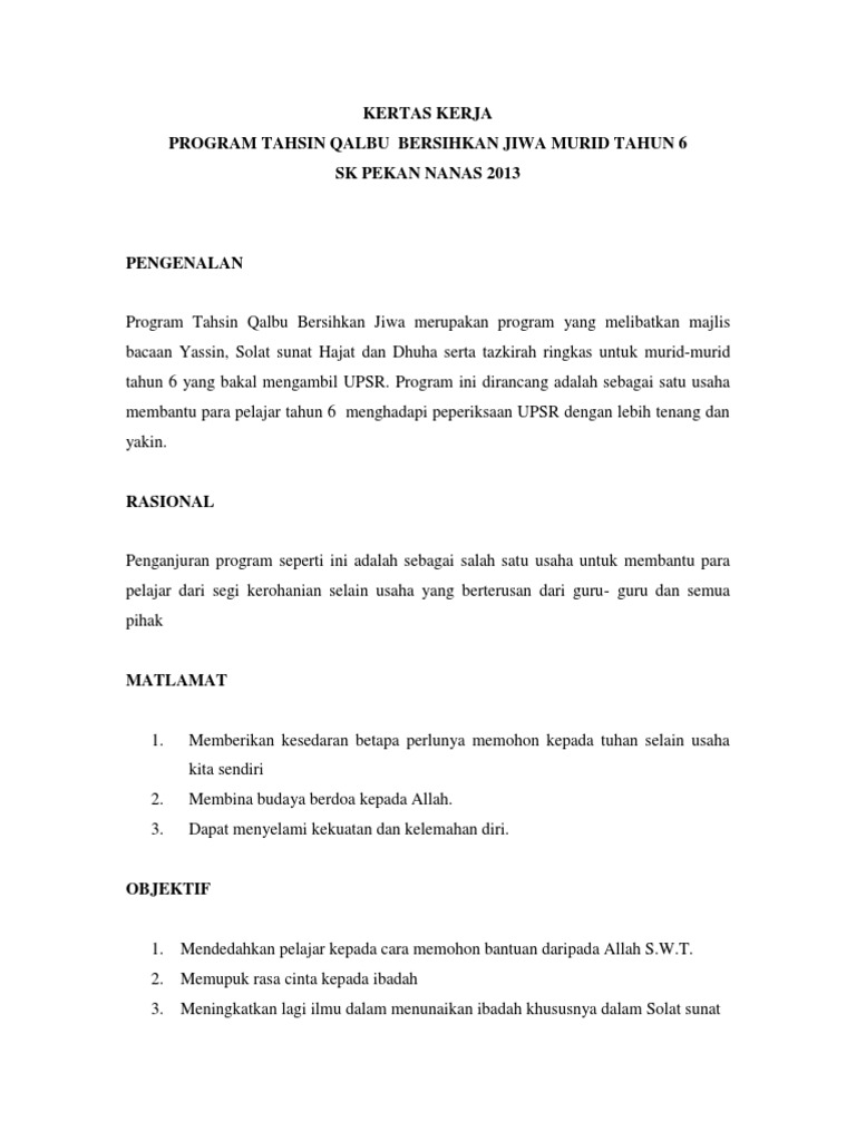 Doc Kertas Kerja Program Solat Hajat Upsr 1429 H 2008 Jk Bimbingan Kaunseling Dan Panitia Agama Islam Sekolah Kebangsaan Sayed Othman Miri Aisyah Meor Academia Edu