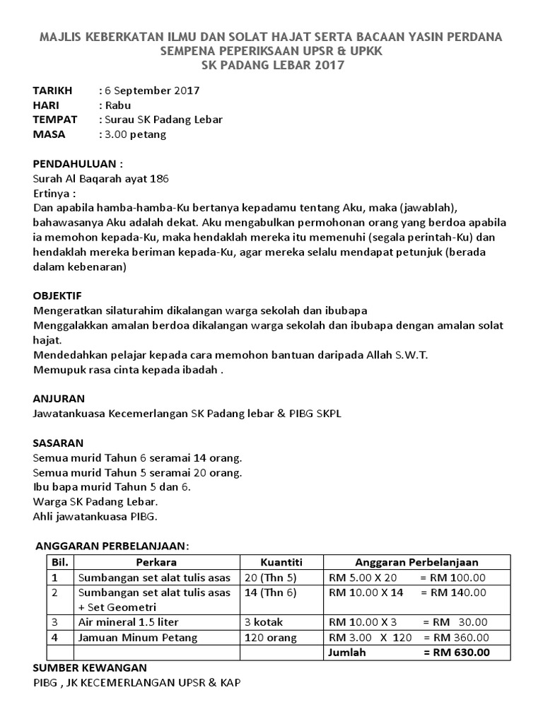 Kertas Kerja Majlis Mohon Restu Dan Solat Hajat Pdf
